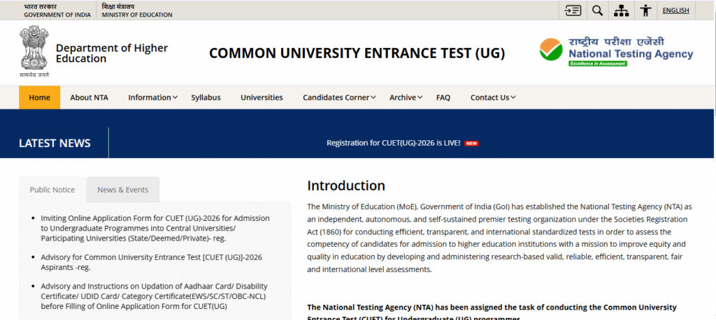 CUET UG 2026 – Quick Details